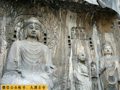 魏窟――公元495年魏宗室丘慧成开始在龙门山开凿古阳洞,500--523年魏宣武帝、魏孝明帝连续开凿宾阳洞的北中南三个大石窟,石阳洞和宾阳洞的修建共费人工80万以上,还开凿了药方洞和东魏时开凿的莲花洞等石窟。北朝石窟都在龙门山,古阳洞自慧成至东魏末50多年的营造,表现出列多的中国艺术形式,大佛姿态也由云岗石窟的雄健可畏转变为龙门石窟的温和可亲。以宾阳中洞主佛为代表的佛像,人物面部含着微笑,龙门石窟比云岗石窟表现出更多的中国艺术佛像。