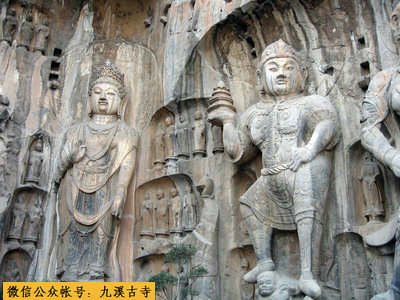 唐窟――最盛期是唐朝,占石窟总数的60%以上,武则天执政时期开凿的石窟占唐代石窟的多数,与她长期有洛阳有关。奉先寺是最具有代表性的唐窟,二菩萨70尺,迦叶、阿难、金刚、神王各高50尺(唐代长度)。规模之大,在龙门石窟中称第一,先后用了四年时间,武则天自己出钱二万贯。