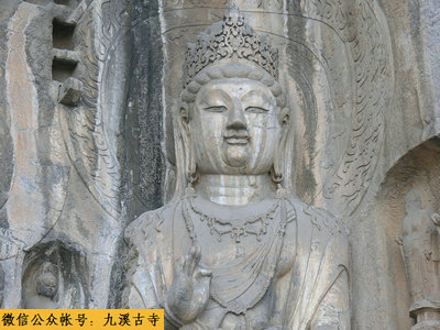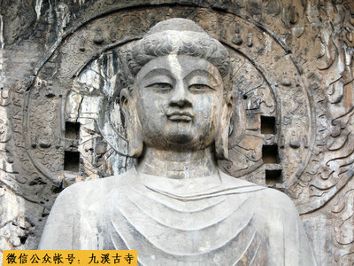 奉先寺是龙门石窟中最大的一个窟,长宽各30余米。奉先寺的不平凡,在于中间那尊巨大的卢舍那雕像,实在是一件精美绝伦的艺术杰作。卢舍那佛像总高17.14米,头高4米,耳长1.9米。据佛经说,卢舍那意即光明遍照。这尊佛像,丰颐秀目,嘴角微翘,呈微笑状,头部稍低,略作俯视态,宛若一位睿智而慈祥的中年妇女,令人敬而不惧。有人评论说,在塑造这尊佛像时,把高尚的情操、丰富的感情、开阔的胸怀和典雅的外貌完美地结合在一起,因此,她具有巨大的艺术魅力。