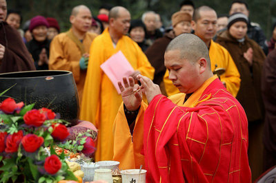 为了迎接2015年新春佳节,祈祷新的一年世界和平、国泰民安、风调雨顺、人民安乐;广大信众灾障消除、合家平安、事业兴旺、万事吉祥。长沙县九溪古寺于乙未年正月初一日凌晨1时,举办“福到千家——2015年迎新供灯祈福法会”。